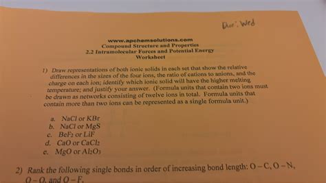 Molecular and ionic compound structure and properties 2.2 intramolecular forces and potential energy worksheet 1) draw representations of both ionic solids in each set that show the relative differences in the sizes of the four ions, the ratio of cations to anions, and the charg e on each ion; If the measured value for h f is close to the.