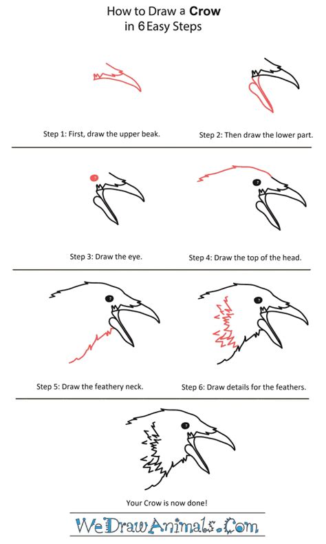 Now draw the lower part of the beak. Draw a curved v on the left side of the eye for the upper part of the beak. This easy crow instruction guide is perfect for younger students looking to learn how to draw. Draw the outline of the face. Above the upper curved line, draw 5 triangles and add a small.