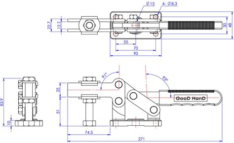 Toggle Clamp Cad Drawing. Toggle clamps offer secure positioning, are fast and easy to operate. The toggle clamps consist of a handle to operate, a clamping arm to reach the work piece, linkages for multiplying the applied force, and a base for mounting at the workplace on its base.